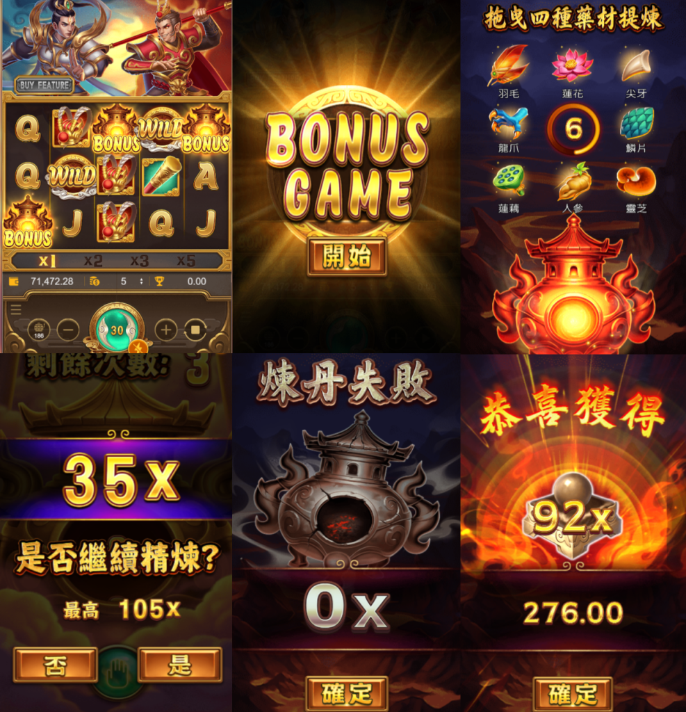 | 紅利遊戲 | 收集3個Bonus進入;精煉藥材提升倍率,失敗彩金歸零 |