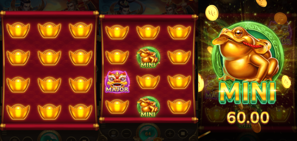 紅利遊戲中,玩家收集三個金爐圖標後即可進入挑戰,選擇不同的藥材精煉方式,成功後可獲得隨機倍率彩金,但失敗則會清空本次紅利,增添策略與刺激感。彩金遊戲則以12個金元寶盲選的形式呈現,集滿三個相同符號即可贏取對應獎金;神秘彩金則在遊戲過程中隨機觸發,金幣自動掉落並顯示獎金,無需額外操作;天降奇寶則會讓寶箱從天而降,玩家點擊即可領取隨機獎勵,充滿驚喜與期待。