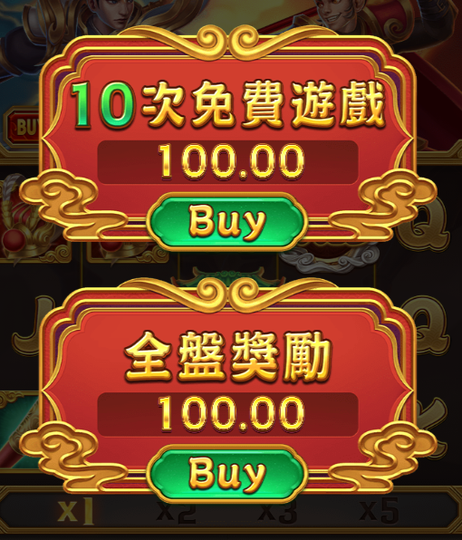 | 購買遊戲 | 花100倍投注金額即可購買一般免費遊戲或全盤遊戲,加速觸發高倍率獎勵 |